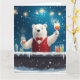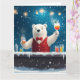 Genießen Sie eine ansprechende Illustration eines Eisbären, der als Barkeeper verkleidet, hinter einem festlichen Bar stehend und Drinks serviert wird. Dieses skurrile Design besticht durch farbenfrohe Cocktails, die Dekoration der Ferien und das freundliche Ambiente des Winters