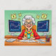 Die sonnige Großmutter handelte Aktien auf Computerbildschirmen, umgeben von Diagrammen und Dollarzeichen. Humorvolle und farbenfrohe Illustration von Senior Lifestyle, Finanzwesen, Ruhestand, Spaß und unerwarteten Hobbys.