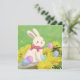 Ein niedliches Beispiel für einen Hase mit Ostereiern und gelben Blumen