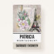 Eine hübsche Collage aus gemalten Blume und Vintagen Postzeichen mit einer schwarzen Abbildung des Eiffelturms. Charmantes und elegantes Design.