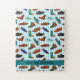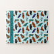 Puzzle für Männer mit handgezeichneten Illustrationen von Männerschuhen, Sneakers und Stiefeln in männlicher Blues und Braun. Es gibt einen anpassbaren Streifen unten, um Ihren Namen oder Ihre Nachricht hinzuzufügen. Das perfekte Geschenk für Teenager und Erwachsene-Schuhsüchtige!