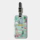 Ein anschauliches Gepäckanhänger für Ihre Tasche mit einer handgemalten Karte mit Städten wie New York, Paris, Rom und London