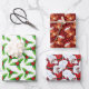 Illustriert-grün-braun-rote Weihnachtsmotive Geschenkpapier Set