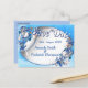 Illustrierte, weiße Mond-Blume in Aquarelltönen mit Vögeln und blau-grüne Blätter auf blühendem Hintergrund, die über ein kreatives, geschliffenes Papierbild gezogen werden, um eine individuelle Note zu erhalten. Dieses moderne, stationäre Design ist perfekt für jede Feier im Freien in einem Sommergarten wie für eine Hochzeit.
