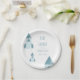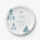 Papier-Teller für eine Babydusche mit einer Serie von blauen Raketenraumschiffen. Dieser Artikel zeigt blaue Raumraketen mit entspanntem und luftigem Text. Alle Wörter können angepasst werden.