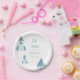 Illustrierte Blue Rocket Ship Babydusche Pappteller