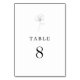 Diese elegante Tischnummer eignet sich ideal für eine einfache Hochzeit. Das Design ist minimalistisch mit handgezeichneter Blume und romantischer und skurriler Typografie dekoriert. Die Karte druckt auf der Vorder- und Rückseite (beidseitig). Zahlen können im Personalisierungsfeld geändert werden.