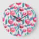 Illustrierte Handfloralen: Aquarelltextur. Große Wanduhr