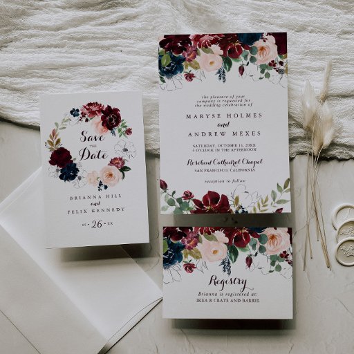 Diese Aquarell illustrierte Kalligraphie schlürfen und sehen Einladung ist perfekt für eine einfache Begegnung mit dem Baby-Party. Das Design mit kunstvoll handbemalten Aquarellblau, bordeauxrot, rot, rot, blüten Rose und Pfannkuchen mit eleganten grünen Blätter inspiriere die farbenfrohe, idyllische Herbstschönheit.