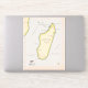 Illustrierte Karte von Madagaskar in einem Vintagen, detaillierten Stil, mit einem roten Flugzeug dekoriert.