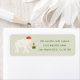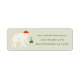 Festliche Retourenaufkleber mit moderner Typografie, gepaart mit einer lustigen Darstellung eines weißen Elefanten in einem schicken Weiß auf Creme Farbschema mit lustigen Pop in Rot und Grün. Originelle Kunst und Design von Annie Montgomery Design.