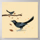 Illustrierte Schwarze Vögel im Herbst, einfache geometrische Vögel.