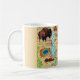 Eine lustige Vintage Postkartenlandkarte des Yellowstone Nationalparks, die auf einer Tasse neu angelegt wurde. Die Karte kann neu positioniert werden, um jeden gewünschten Teil der Karte anzuzeigen.