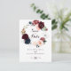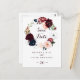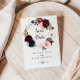 Diese illustrierte, blumengeschmückte Postkarte mit Aquarellfarben ist ideal für eine moderne Hochzeit. Das Design besticht durch künstlerisch handbemalte Aquarellblau, Bordeaux, Rot, Rot, Rose und Torfbäume mit eleganten grünen Blätter und einem Kranz, der die farbenfrohe, idyllische Herbstschönheit inspiriere.