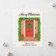 Begrüßen Sie die Festtagssaison mit dieser charmanten und sehr detaillierten illustrierten Weihnachtskarte mit roter Tür. Das Design zeigt einen gemütlichen Ziegel-Eingangsbereich und eine leuchtend rote Haustür, die üppig mit einem vollen Stechpalmen-Girlande und einem passenden Kranz dekoriert ist, alles akzentuiert mit leuchtend roten Schleifen. Festlich verpackte Geschenke sind ordentlich auf den Stufen gestapelt und vervollständigen die herzliche Weihnachtsszene. Mit der beigefügten Botschaft "VON UNSEREM HAUS ZU IHREM" ist dieses Design perfekt, um eine warme, traditionelle und nachbarschaftliche Grüße von Ihrer Familie zu senden. Sein klassischer, fröhlicher Stil ist eine wunderbare Möglichkeit, Weihnachtsstimmung zu vermitteln.