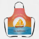Dieses Illustrierte Sailboat On Water Moonrise an der Sunset Schürze ist eine wunderschöne Abbildung eines Segelbootes auf dem Wasser mit einem Mondaufgang im Hintergrund vor einem brillanten orange-gelben Himmel. Der Text ist für einen Familiennamen anpassbar, und der "Sailing is My Jam!" kann angepasst werden. Das Mondlicht reflektiert das Wasser und kontrastiert mit den warmen Farben des Himmels. Das gelbe Boot segelt mit orangefarbenen Mustern kontrastiert schön mit dem Mond.