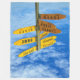 Das gelbe Schild, das auf verschiedene Weltregionen zeigt, ist ein Geschenk für jemanden, der Lieben hat zu reisen!