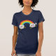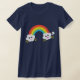 Dieses T - ShirtAusrüstungsbeschreibungen ein Regenbogen und zwei Wolken als die Hauptgraphiken. Jede Wolke hat ein niedliches kleines Gesicht auf ihr, einer, die glücklich sind und trauriger einer.