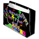 Große, schwarz glänzende Geschenktasche mit einem Spritzer auf der Vorderseite von Rot, Orange, Gelb, Grün und Blau, hochkarätige Sneakers in Neonfarben, Kassetten, farbenfrohe Sonnenbrillen und der Phrase "Im 80er stecken" in Neonbriefen. Siehe dazu passende Geschenktüte, Konfetti, Gefälligkeitsbeutel, Gefälligkeitstafel, Gefälligkeitstafel, Etikett, viereckiger Aufkleber, individuell zugeschnittenes Vinyl-Aufkleber und Packpapier. Sehen Sie sich die gesamte Tubular 80er Gift Bag Kollektion in den SONDEREN TOUCHS an. | Abschnitt Gastgeschenke.