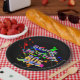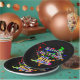 Set von acht 9" Papier-Tellern mit einem Bild von rot, orange, gelb, grün und blau lackierten Spritzern, Top-Sneakers in Neonfarben, Kassetten, farbenfrohe Sonnenbrillen und der Phrase "In den 80er stecken" in Neonbriefen. Siehe dazu passende Süßigkeiten, Espressotasse, Kolben, Tasse, Krug, Schuss Glas, Teekanne und Untersetzer. Sehen Sie sich die gesamte Kollektion von Tubular 80er Plate im NAHRUNGSMITTEL/BEV an. | Abschnitt Geschirr.