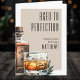 Eine gefaltete Geburtstagskarte mit einem auffälligen Whisky-Themendesign. Die Vorderseite zeigt rechts eine Wasserfarbenabbildung einer Whiskyflasche und eines Glases, gepaart mit dem Satz „Aged To Perfection“ oben in klassischer Serifenschrift. Darunter ist Platz für „Happy [Alter] Birthday [Name]“, sodass Sie es für jeden Meilenstein oder jedes Jahr personalisieren können.