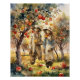 Zwei Schwaden stehen zwischen Apfelbäumen in einem Obstgarten, umgeben von reifen Äpfeln, die sich auf den Ästen befinden und auf dem Boden verstreut sind. Sie sind in alten Kleidern gekleidet und haben Hüte auf den Köpfen, stehend noch in der friedlichen, sonnigen Umgebung. Digitale Kunstfotografie CS5