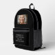Ehre einen Liebsten mit diesem schwarzen "In-Memory"-Foto und dem Text-Rucksack, der Platz für ein Foto und personalisierten Text bietet. Ideal für Wohltätigkeiten, Gedenkspaziergänge oder Sensibilisierungsveranstaltungen, die Krebserkrankungen, Demenz oder andere Krankheiten unterstützen. Ein herzlicher Weg, Unterstützung für eine Wohltätigkeit zu zeigen und sich an jemanden zu erinnern, der etwas Besonderes ist.