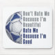Futbal Art Don’t Hate Me Denn ich bin ein guter T - Shirt, Geschenke und Accessoires, die vom ITD Sports Center kreiert wurden. Das Original eines halbblauen und weißen Futballballs auf der links Seite mit den Worten in Grau und Blau auf der rechten Seite............................................................................................................................................................................................ Unsere sportlichen und spielerischen Produkte sind großartige Geschenke für Fußball-Liebhaber, Fuybal-Liebhaber, Fußballspieler, Fußballstars, Fußball-Trainer, Athleten und Sportliebhaber jeden Alters. Es ist alles Spaß und Spiele bei Imagine That! Design Sport Center!