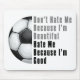 Fußball Art Don’t Hate Me, weil ich gute T - Shirt, Geschenke und Accessoires bin, die vom ITD Sports Centre kreiert wurden, zeigen unsere originellen Kunstwerke eines halben schwarz-weißen Fußballballs auf der links Seite, mit schwarz-weiß auf der rechten Seite. Hasse mich nicht, weil ich schön bin, hasse mich, weil ich gut bin. Unsere sportlichen und spielerischen Produkte sind großartige Geschenke für Fußball-, Fußball-, Fußball-, Fußball-, Fußball-, Fußball-, Fußball-, Fußball- und Sportliebhaber jeden Alters. Es ist alles Spaß und Spiele bei Imagine That! Design Sport Center!