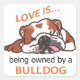 Im Besitz eines Bulldoggen Quadratischer Aufkleber