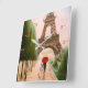 Eiffelturm - Paris Frankreich, und Liebhaber unter dem roten Schirm - Acrylmalerei Kunst "At the Eiffel Tower" & entworfen mit Stunden & Minuten Dials auf jeder Zazzle Wall Uhr. #WallClocks #Clock #EiffelTower