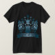 Dieser Felsen-T - Shirt kennzeichnet ein Wappen mit einer elektrischen Gitarre, ein Schädel und gekreuzten Knochen und eine Fahne mit dem Slogan "im Felsen, den wir vertrauen".