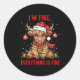 Im Fine Everything Is Fine Funny Christmas Highlan Runder Aufkleber