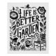 Ein niedliches typografisches Poster für Gärtner oder Naturfreunde und Pflanze mit Gartenmöbeln, Gartenstuhl und einem Korb aus Blume. Eine Gartenlandschaft. Geschenke es einer Person mit einem grünen Daumen oder einfach, wer Lieben natürliche Pflanze und Blume.