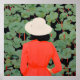 Eine Frau, die einen Hut trägt, verbringt Zeit in ihrem Garten.