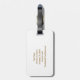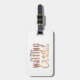 Das Gepäckschild zeigt ein einfaches goldfarbenes und braunes Skript auf weißem Hintergrund. Es enthält ein Kreuz und ein inspirierendes Christliches Zitat: "Im gewartet, Gott arbeitet."