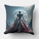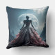 Eine geheimnisvolle Figur in einem aufwändigen Gewand steht vor einem glühenden Vollmond, Set gegen eine dramatische Felslandschaft. Die Szene wird durch den Kontrast zwischen den komplizierten Details des Kleides und dem rauen Gelände verstärkt.