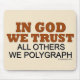 Im Gott vertrauen wir. Alle andere wir Polygraph! Lustige und ironische Parodie des US-Motto-Sprichworts/-slogans. Die braune Hintergrundfarbe kann zu jeder möglicher Farbe geändert werden.