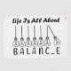 Coole Pinselskripttypografie Bei Life geht es um Balance, Balance, Pinselskript, Glühbirne, Kursive, Lebensquote, Glühbirnen, Pendeln, Sprichwort, Schrift, Glühbirne, Gleichgewichtskugeln, Pendelkugeln, Balancerad, Schrifttypografie