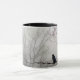 Auf einem nebeligen Erbsensuppentag, der auf einem Ast steht, schaut es surreal und ruhig aus, perfekt für eine Tasse heiße Schokolade.