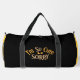 This black and orange duffle bag features the playful and apologetic phrase "I'm So Cute SORRY" in a charming gold and white font with tiny heart accents. It's a fun and sassy accessory perfect for those who know they're adorable and maybe just a little bit mischievous. Edit color of the bag caps and body in the Design tool to your favored colors.