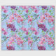 Ein wunderschönes, Lila und rosa Blumenpapier mit Hummingvögeln, das zum Geburtstag auf blauem Hintergrund fliegt