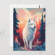 Farbenfrohe Kunst mit einem Samoyed im Wald bei Sonnenuntergang.