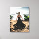 Im Wind ummantelt - Elegante Frau im Schwarzen Kle Leinwanddruck
