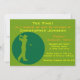 Sie können den gesamten Text auf dieser Golf-thematischen Party Einladung personalisieren. Das Design ist mit einem Golfer-Bild versehen, das einen Club in einem grünen Kreis-Hintergrund schwingt. Auch die Farbe des grünen Hintergrunds kann geändert werden. Ändern Sie den Text, um ihn für eine Geburtstagsfeiereinladung zu verwenden, wenn Sie gewollt haben.