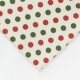 "Image displaying a patterned fabric with a grid of small red and green dots on a beige background. The front shows the pattern, while the back is plain white featuring subtle wrinkles."
