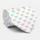 "Image shows two views of a white tie with a repeating geometric pattern in red and blue. The top view displays the front, while the bottom shows the back."
