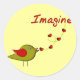"Imagine" Bird and Hearts Design Runder Aufkleber