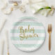 Dieser entzückend trendy Babyduschen-Teller kennzeichnet moderne tadellose grüne und weiße Streifen mit Imitatgoldfolie Confetti. "Baby-Duschen" Text ist auch in einer hübschen Imitatgoldfolienart erfolgt. Tadellos moderner und Superbonbon! Freunde und Familie werden Liebe die einfache, moderne Eleganz. Sehen Sie mein Geschäft für koordiniereneinzelteile (und treten Sie mit mir in Verbindung, wenn Sie das noch etwas benötigen, das geschaffen wird, um zu koordinieren!), ©2016 Weddings*n*Whimsy