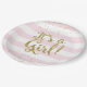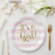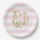 Dieser entzückend trendy Babyduschen-Teller kennzeichnet moderne rosa und weiße Streifen mit Imitatgoldfolie Confetti. "Es ist ein Mädchen!" Text ist auch in einer hübschen Imitatgoldfolienart erfolgt. Tadellos moderner und Superbonbon! Freunde und Familie werden Liebe die einfache, moderne Eleganz. Sehen Sie mein Geschäft für koordiniereneinzelteile (und treten Sie mit mir in Verbindung, wenn Sie das noch etwas benötigen, das geschaffen wird, um zu koordinieren!), ©2016 Weddings*n*Whimsy